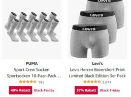 Im Rahmen der „Black Week“ sind jetzt bei Amazon Socken und Boxershorts von Puma, Levis und Jako mit Rabatt zu haben. Auch Hoodies sind reduziert im Angebot. Die Socken & Boxershorts von Puma & Levis mit Rabatt gibt es nur für wenige Tage, solange Vorrat reicht. Wie immer können einzelne Größen- und Farbkombis schnell vergriffen […]