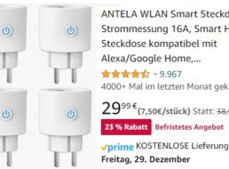 Ein Viererpack smarte Steckdosen mit Unterstützung von Amazon Alexa ist jetzt für kurze Zeit zum Aktionspreis von 29,99 Euro zu haben. Die fast 10.000 Bewertungen fallen sehr gut aus. Das Viererpack smarte Steckdosen für 29,99 Euro ist nur für kurze Zeit zum Aktionspreis im Angebot. Die Steckdosen vom Typ „HS-Plug-2023Version“ verfügen auch über eine integrierte […]