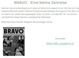 Bravo hat nachgelegt: Die Erstausgaben der Jahre 1959 bis 1999 sind jetzt kostenlos zum Download verfügbar. Mit dabei auch der „Bravo Starschnitt E.T.“ aus dem Jahr 1983. Die Erstausgaben „BRAVO“ der Jahrgänge 1956 bis 1999 zum kostenlosen Download sind ab sofort verfügbar – bisher reichte die Gratis-Offerte nur bis zum Jahr 1994. Mit dabei ist […]