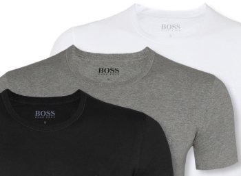 Das Dreierpack T-Shirts von Hugo Boss für 29,99 Euro frei Haus ist nur bis Dienstag vormittag zu haben, solange Vorrat reicht. Verfügbar ist das Textil wahlweise in weiß, schwarz oder grau sowohl mit V-Ausschnitt, als auch mit Rundhals. Das Boss-Logo ist auf der Brust eingestickt.