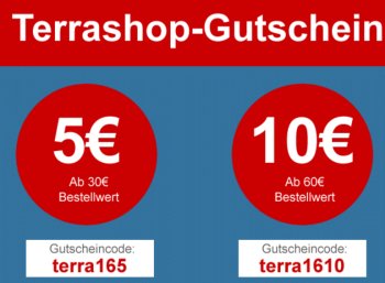 Bei Terrashop gibt es ab sofort einen Rabatt von fünf bis zehn Euro – beide Gutscheine sind noch bis zum 8. Januar 2017 einlösbar.