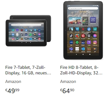 Es handelt sich um die Einsteigerversion des Tablets mit 16 GByte Speicher (erweiterbar via SDXC-Card) und Werbung. Ohne Werbung kostet das gleiche Tablet 15 Euro mehr.