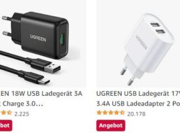 Eine integrierte grüne LED zeigt einen aktiven Ladeprozess an. Der Datentransfer geht mit bis zu 480 Mb/s vonstatten. Das Produkt ist bereits Bestseller im Bereich USB-Kabel und kommt in über 41.000 Rezensionen auf bislang 4,7 von fünf Sternen. Käufer loben das „sehr schnelle USB-Kabel“ und die „coole Leuchte“. Nur drei Prozent der Käufer entschieden sich für weniger als drei Sterne. Wichtig: Die Ladeleistung von bis zu 100 Watt hängt natürlich vom verwendeten Netzteil ab.