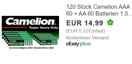 Das 120er-Pack Batterien für 14,99 Euro frei Haus ist nur bis Dienstag Morgen verfügbar, solange Vorrat reicht. Enthalten sind je 60 AA- und AAA-Batterien. Die Kapazität der AA-Batterien wird mit 960 mAh angegeben, die der AAA mit 470 mAh. Die Spannung liegt bei den üblichen 1,5 Volt.