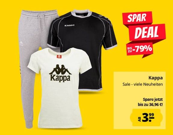 Bei Sportspar sind jetzt wieder im Rahmen eines Kappa-Sale Restposten des Markenherstellers zu Preisen ab 3,99 Euro zu haben. Mit dabei sind Polos, Rucksäcke und Hoodies.