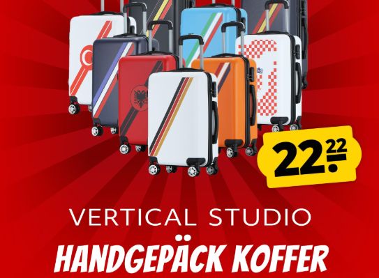 Handgepäckkoffer von „Vertical Studio“ sind jetzt bei Sportspar für 22,22 Euro im Angebot – die Koffer mit einem geringen Eigengewicht von 2,5 Kilogramm und integriertem Zahlenschloss gibt es in zehn verschiedenen Farben.