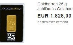 Wird schnell vergriffen sein: Bei Ebay gibt es jetzt einen Goldbarren mit 25 Gramm Gewicht zum Aktionspreis von nur 1498 Euro. Im Vergleich zum Spotpreis am Donnerstag morgen entspricht dies einem sehr niedrigen Aufpreis von 2,4 Prozent. Der Goldbarren mit 25 Gramm Gewicht für 1498 Euro ist nur für kurze Zeit zu haben, solange Vorrat […]