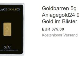 Zum Bestpreis von 375 Euro sind jetzt bei Ebay fünf Gramm Gold frei Haus zu haben – die Konkurrenzpreise von eher unbekannten Shops starten derzeit mindestens fünf Euro höher. Der Goldbarren mit fünf Gramm für 375 Euro frei Haus ist derzeit nirgends günstiger zu haben – derzeit starten die Vergleichspreise bei über 380 Euro mit […]