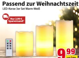 Passend zur Weihnachtszeit ist jetzt bei Völkner ein Dreierpack LED-Kerzen mit Fernbedienung für 12,98 Euro frei Haus zu haben. Andere Shops verlangen mindestens sechs Euro mehr. Das Dreierset LED-Karten mit Fernbedienung ist zum Aktionspreis von 9,99 Euro zu haben, hinzu kommen noch reduzierte Versandkosten von 2,99 Euro. Die batteriebetriebenen Kerzen werden mit IP44 beworben, sind […]