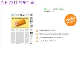 Sechs Ausgaben der Wochenzeitung „Die Zeit“ können sich Discountfans jetzt wieder für 4,95 Euro frei Haus sichern. Das Abo endet automatisch. Die sechs Ausgaben „Die Zeit“ für zusammen 4,95 Euro frei Haus sind nur für wenige Tage verfügbar, solange das Abo-Kontingent reicht. Das Abo endet dabei automatisch, ohne dass es einer Kündigung bedarf. Wer also […]