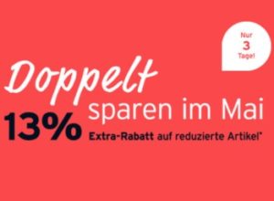 Noch bis Samstag abend sind bei Tchibo bereits reduzierte Artikel nochmals 13 Prozent günstiger zu haben. Für den Gutschein muss kein Mindestbestellwert erfüllt werden.
