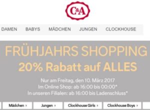 C&A: 20 Prozent Rabatt bis Mitternacht (Bild: C&A.de)